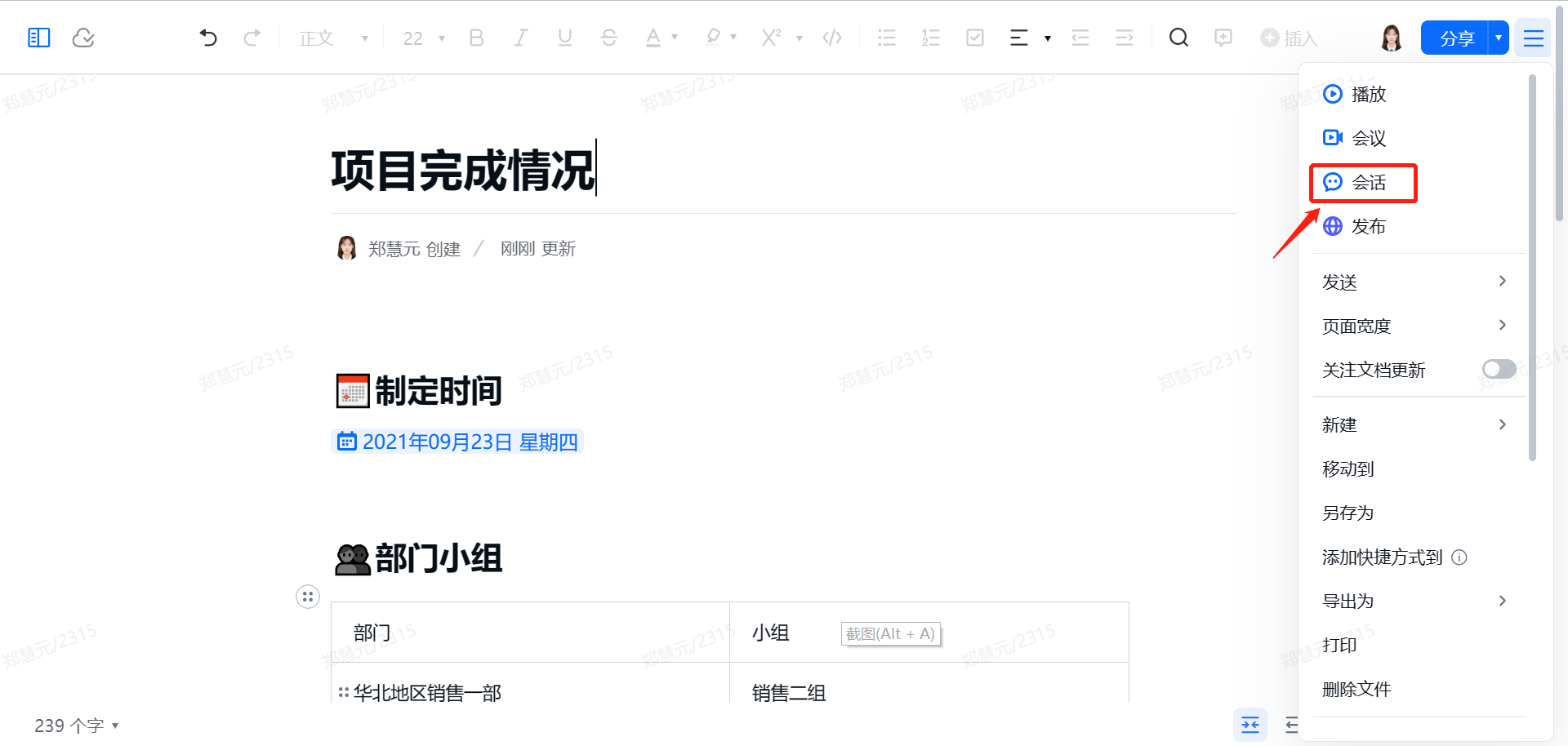 - 修改追溯:右键点击任意内容 → 显示「最后编辑者及时间」